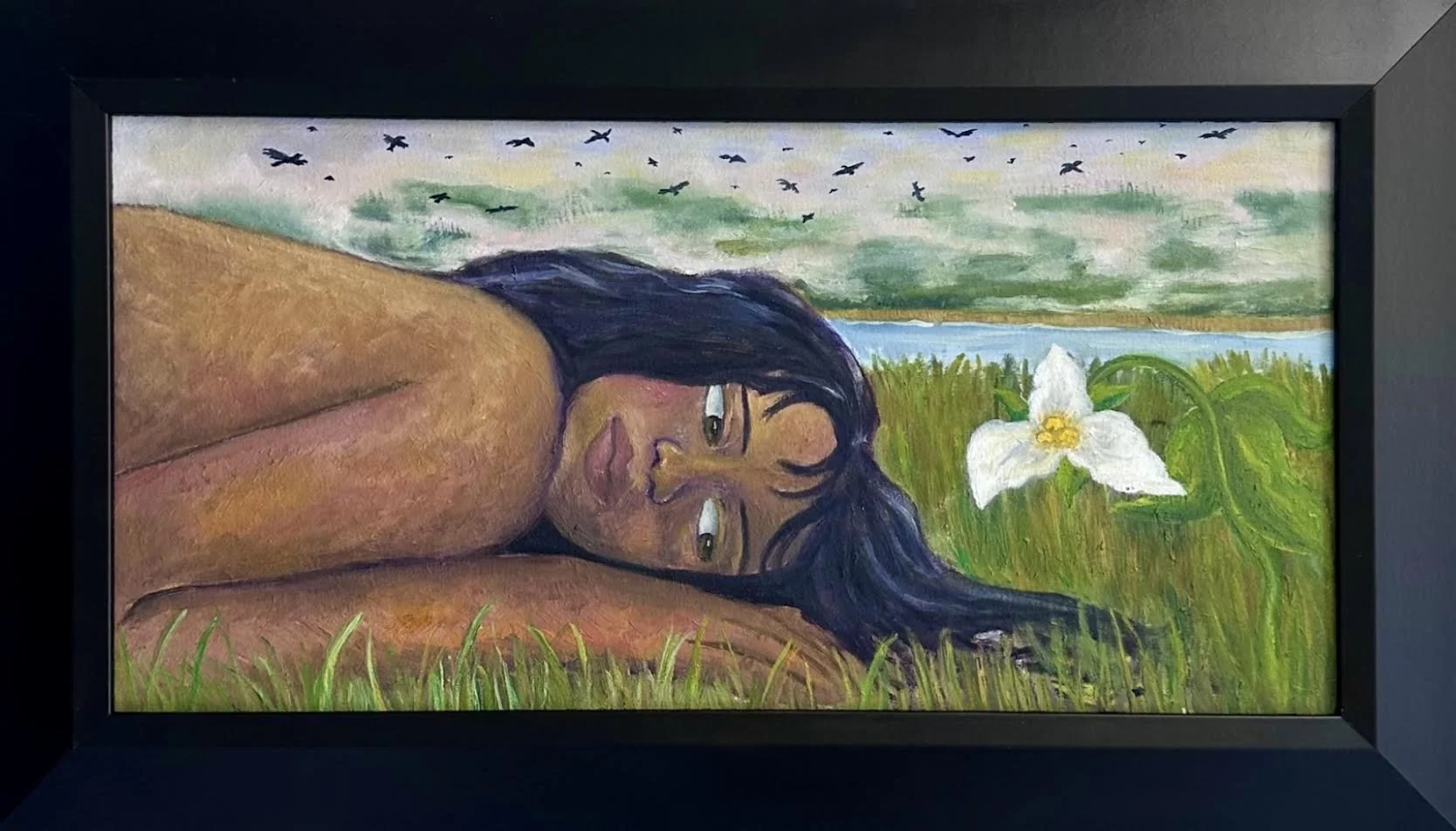 “An uneasy rest in an unknown place” oil on canvas 12”x24”